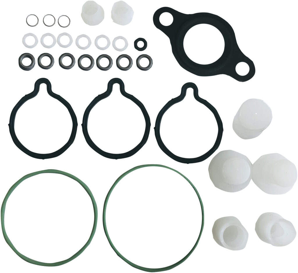 Sección de recambios y accesorios variados, como cubrepedales, tornillos, juegos de juntas y arandelas, suteja equipajes…